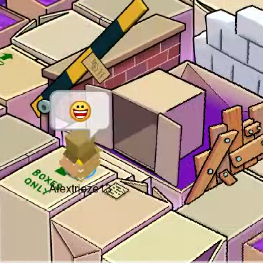 Entrando na dimensão iremos encontrar um deserto, com uma loja. Clicando nela teremos varios objetos de caixas para decorarar seu iglu: