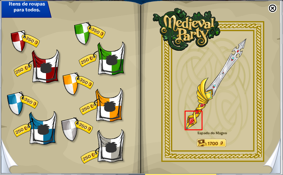 Para conseguir este item, é necessário clicar na figura do puffle no Tabardo Vermelho.