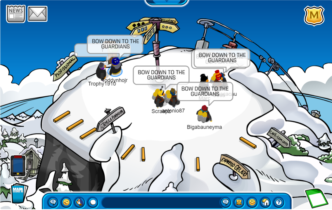 Quem está escrevendo é o Major Brigadeiro Ferboso. Hoje, dia 4 de novembro, nós nos reunimos no Club Penguin Avalanche para a Noite de Jogos, evento no qual jogamos vários jogos dentro da ilha. Começamos pelo Morro Abaixo, depois jogamos Ligue-4, Desafio Ninja, Jogo da Velha e terminamos com uma partida de futebol no estádio.